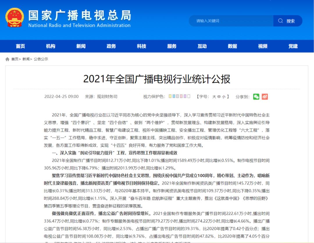 2021年,北京市广播电视和网络视听实际创收收入4022.27亿元(根据国家统计局、国家广播电视总局颁布实施的《广播电视和网络视听统计调查制度》统计所得数据),同比增长38.22%,占全国创收收入的41.58%。