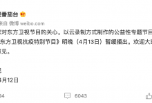 #东方卫视抗疫特别节目暂缓播出# 4月13日凌晨,东方卫视发布声明:“感谢大家对东方卫视节目的关心。以云录制方式制作的公益性专题节目《众志成...