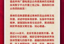中央广播电视总台央视奥林匹克频道及其数字平台开播上线之际,中共中央总书记、国家主席、中央军委主席习近平发来贺信,表示热烈的祝贺...
